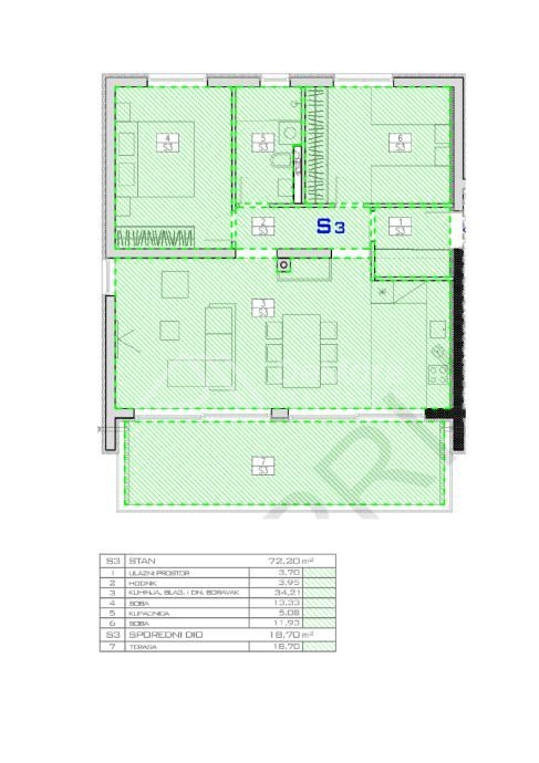Die Wohnfläche beträgt im Inneren insgesamt 72,20 m2.