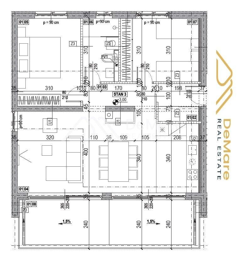 Der gesamte berechnete Nutzwert der Wohnungsfläche mit Ausstattung beträgt 84,05 m2.