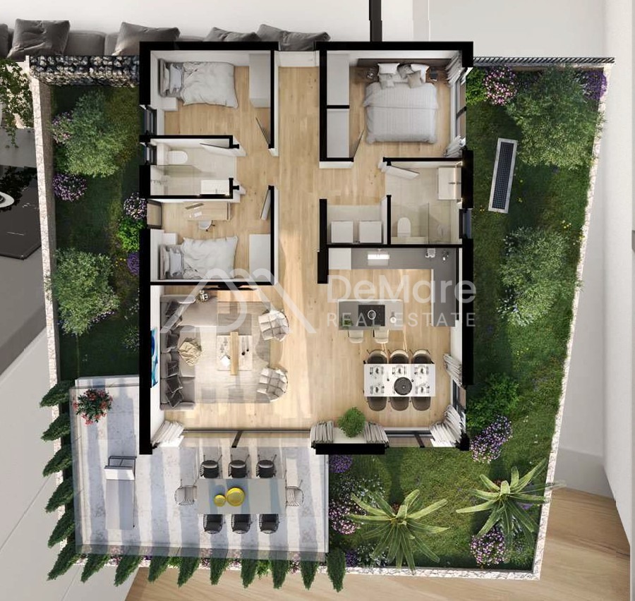 ERDGESCHOSS S1 – Komfortable Wohnung mit drei Schlafzimmern und großzügigem Garten