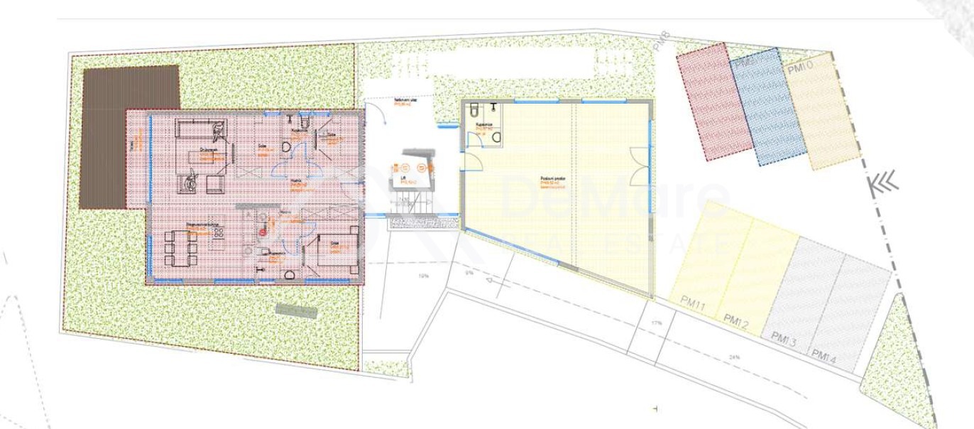 Es handelt sich um ein im Bau befindliches Geschäfts- und Wohngebäude mit einem Bürogebäude und fünf komfortablen Wohnungen.