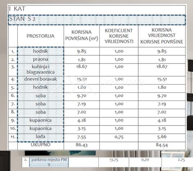 Der gesamte berechnete Nutzwert der Wohnungsfläche mit Ausstattung beträgt 102,19 m2.