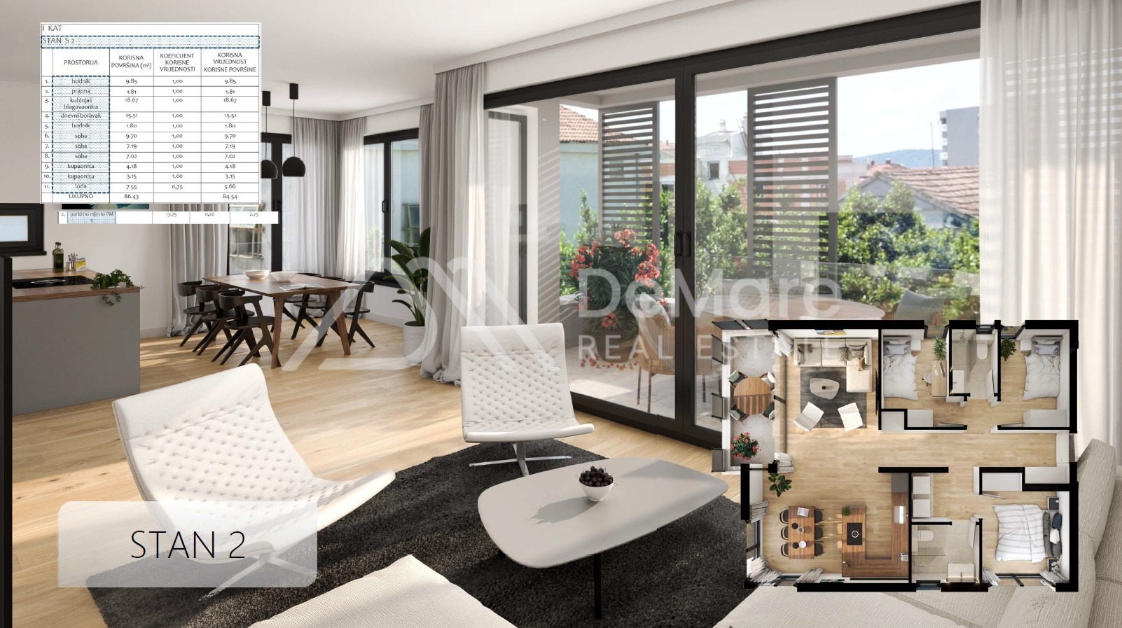 Die Wohnfläche beträgt 84,54 m².