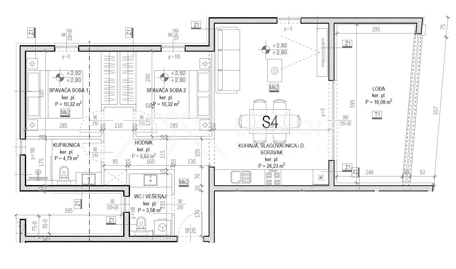 1. OG S4 ≅ Wohnung mit 2 Schlafzimmern und Loggia mit Meerblick