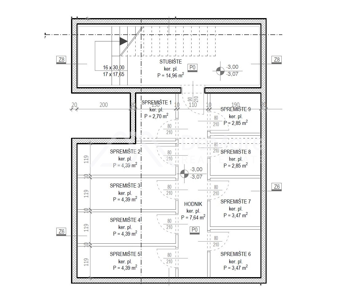 Es handelt sich um ein Mehrfamilienhaus mit insgesamt neun Wohnungen. Das Gebäude verfügt über ein Erdgeschoss, ein erstes und ein zweites Obergeschoss mit Zugang zu Dachterrassen.