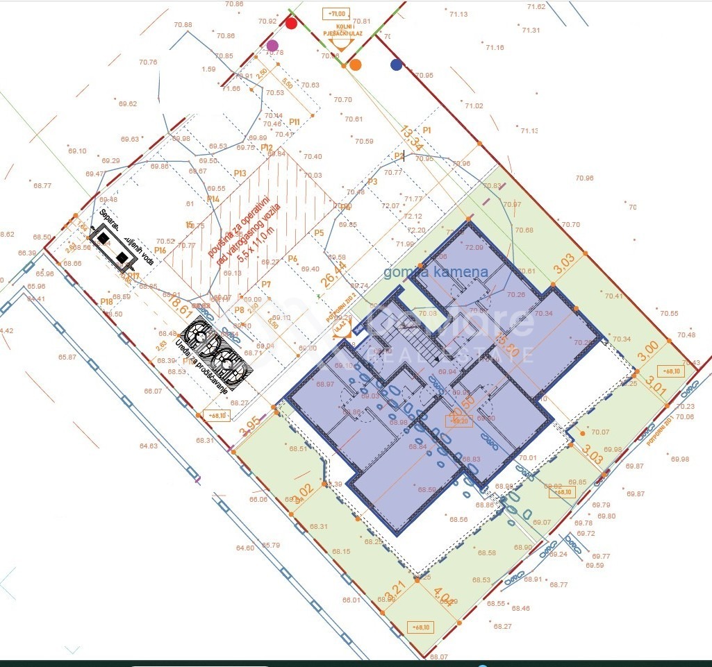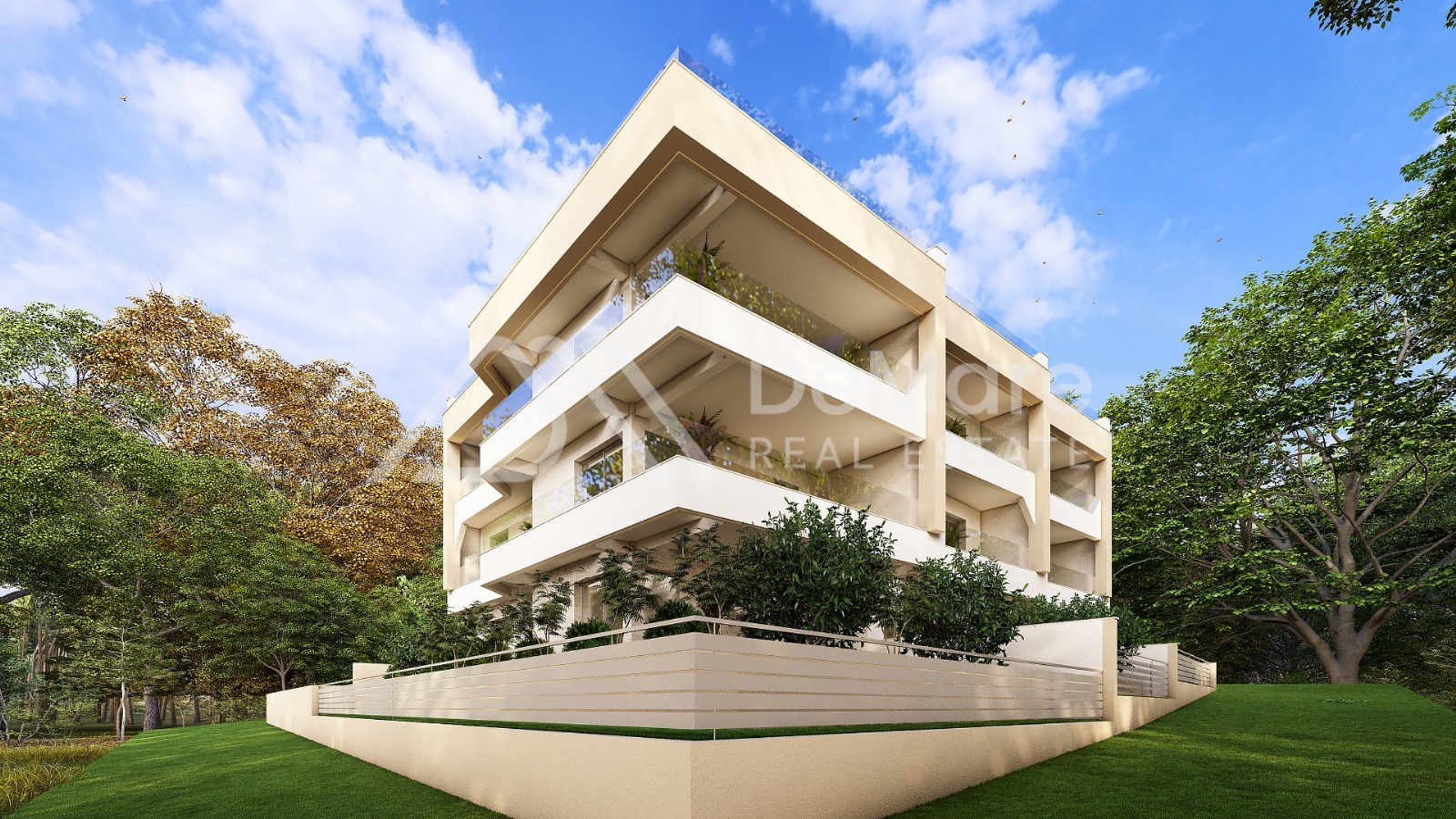 Es handelt sich um ein Mehrfamilienhaus mit insgesamt neun Wohnungen. Das Gebäude verfügt über ein Erdgeschoss, ein erstes und ein zweites Obergeschoss mit Zugang zu Dachterrassen.