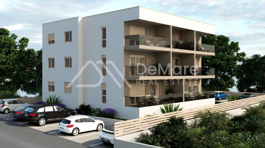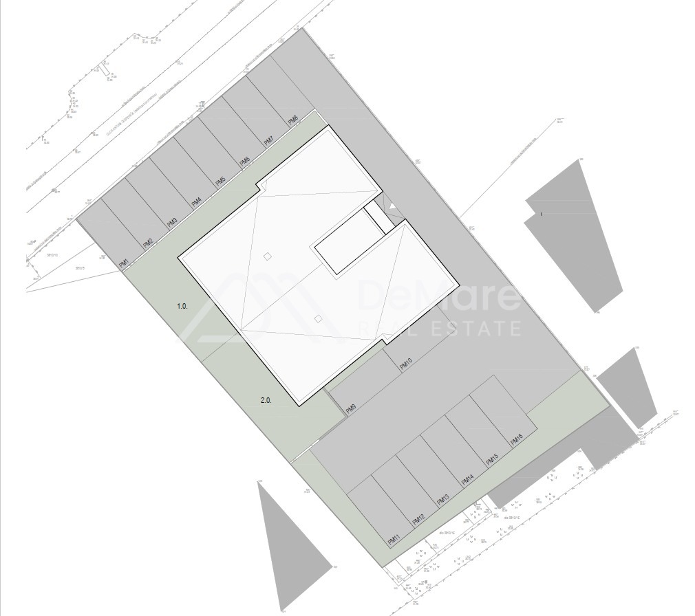 Das Gebäude wird drei Stockwerke haben (ERDGESCHOSS + 1. OG + 2. OG), Abstellräume im Erdgeschoss und Parkplätze im Hof. Insgesamt gibt es acht Wohneinheiten; zwei Wohnungen mit Garten im Erdgeschoss und jeweils drei Wohnungen im Obergeschoss.