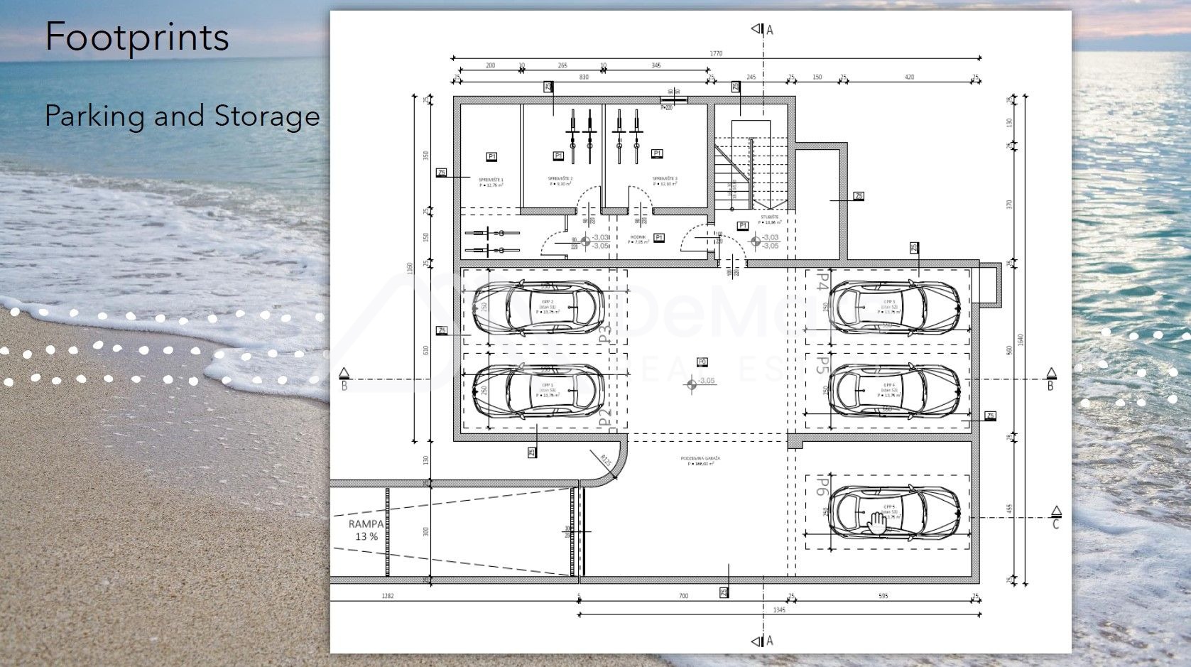 Das Gebäude hat ein Erdgeschoss, 1. und 2. Obergeschoss, und eine Dachterrasse mit wunderschönem Panoramablick auf das Meer und besteht aus insgesamt 3 Wohneinheiten.