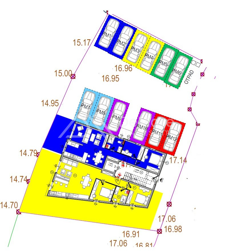 Zur Wohnung gehören außerdem zwei Stellplätze (2 x 13,75 m²) im Innenhof des Gebäudes.