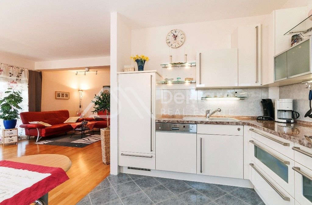 The floor coverings are quality parquet in the living room and bedrooms, and tiles are installed in the kitchen and bathrooms.