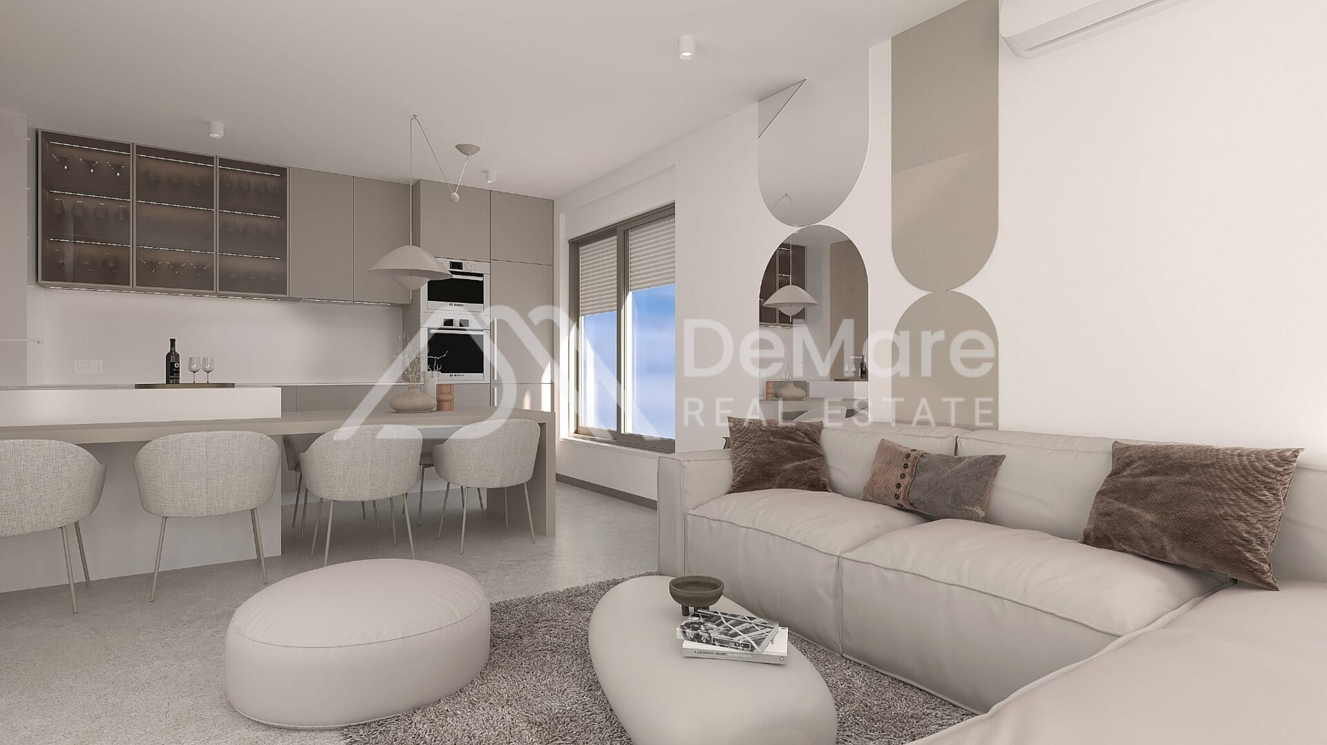 The building is built with high energy efficiency materials, large sliding glass walls, top-quality CORTIZO carpentry, LOW-E three-layer IZO glass with ALU blinds and roller/plice mosquito nets.