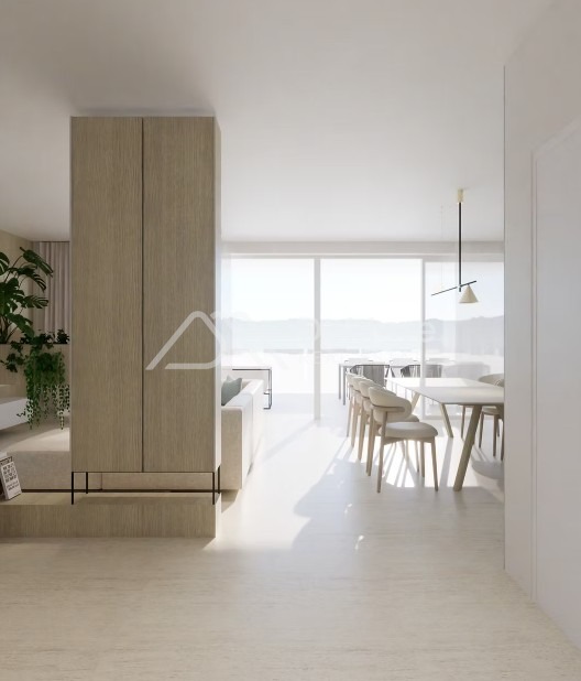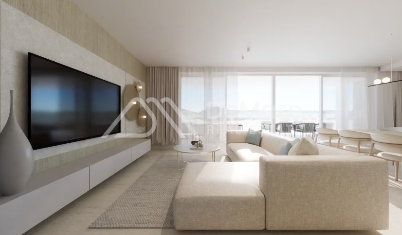 This comfortable, luxurious apartment extends across the entire ground floor of the building, and large glass walls divide the dining room and living room from the covered terrace with a sea view, on which a summer kitchen and outdoor dining and living furniture can be placed.