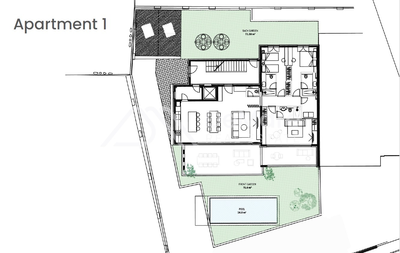 GROUND FLOOR- S1- DELUXE SUITE with POOL consists of:
