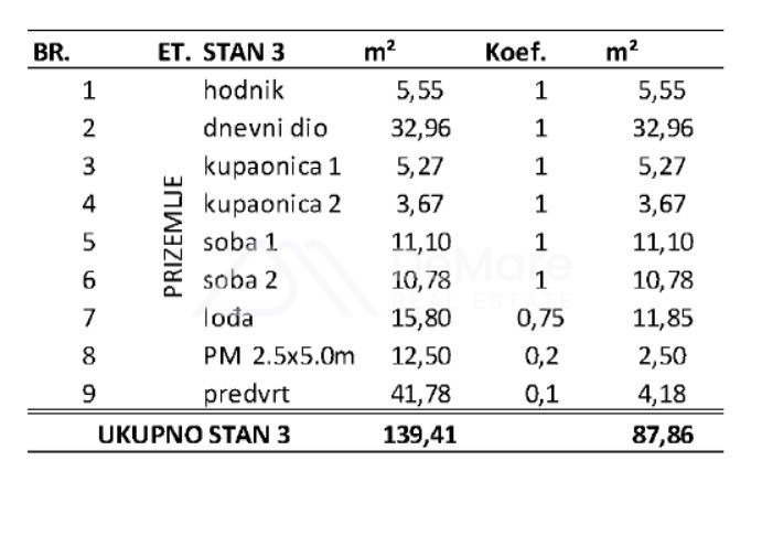 ≅ The total area of the apartment is 140 m2, while the useful calculation value of the area of this apartment is 88 m2.
