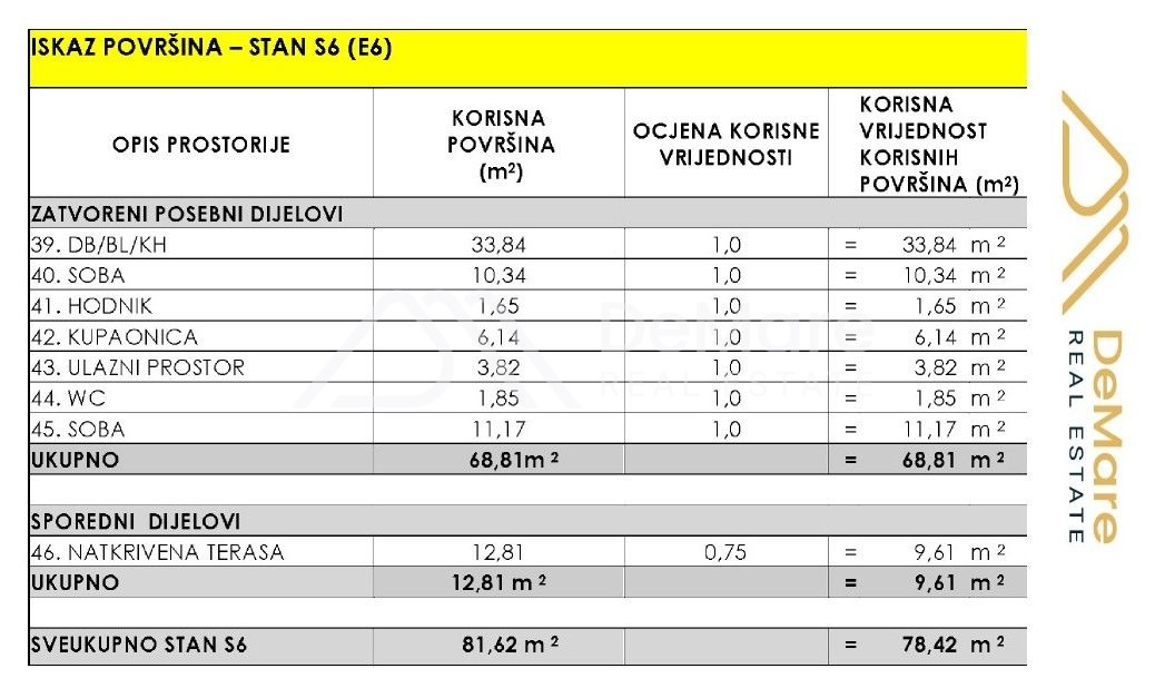 The interior living space of the apartment is 69.81 m2, while the total calculated useful value of the apartment's area is 80.72 m2.