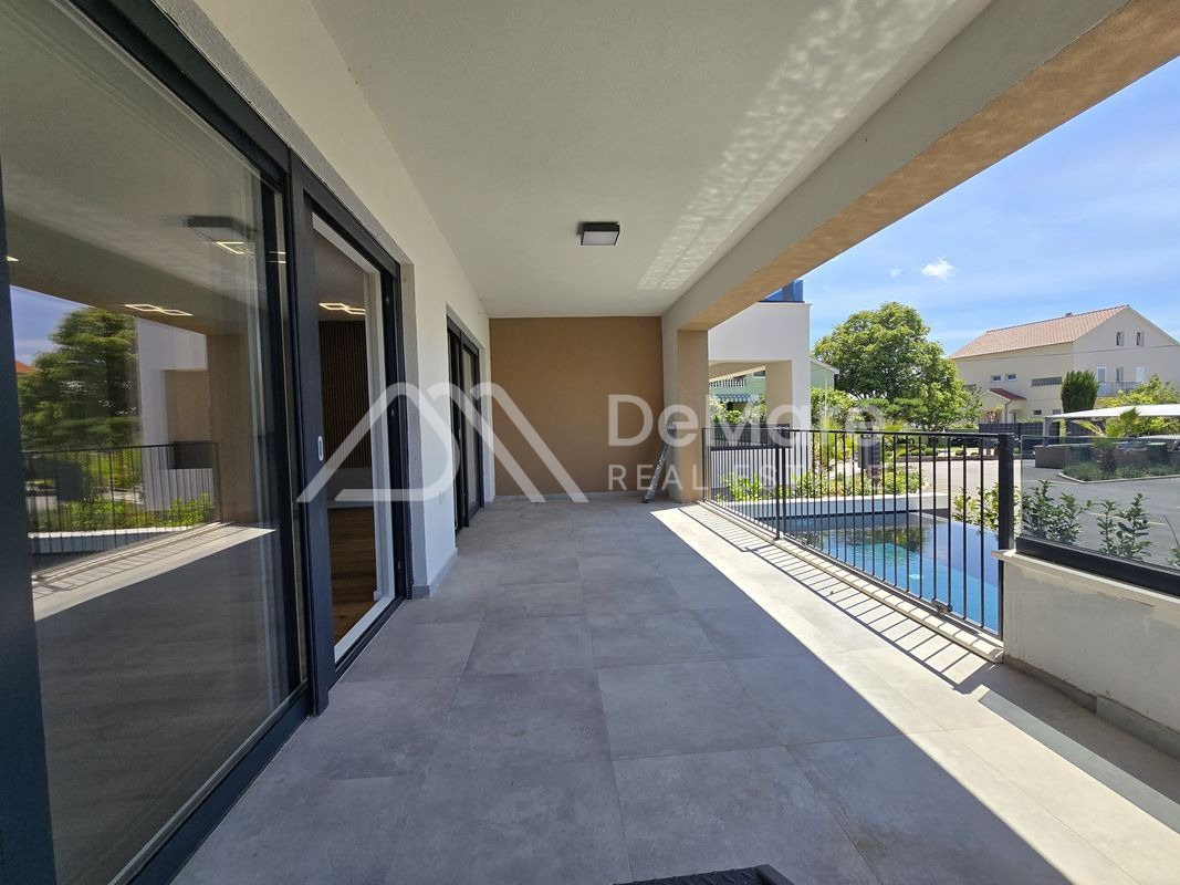 On the ground floor there are apartments with spacious gardens, a swimming pool/Jacuzzi and a sun deck, on the first floor there are 2 apartments each with covered balconies, and on the second floor there are two penthouse apartments with roof terraces offering a beautiful panoramic view of the sea and Zadar archipelago.