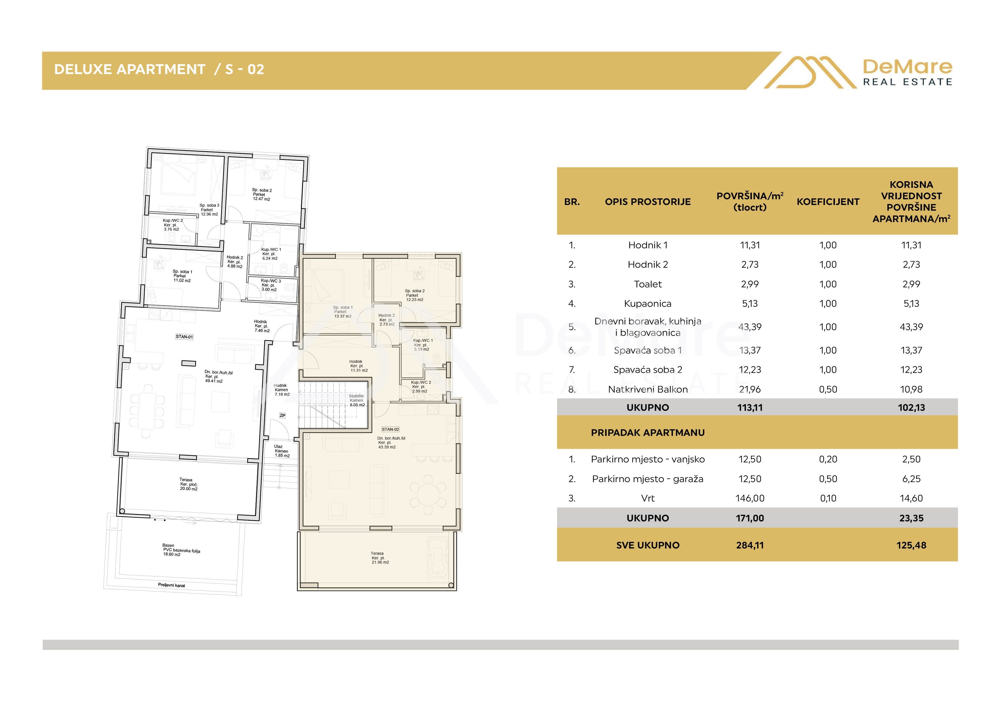 The total area of the apartment is 284.38 m2 and the calculated usable area is 125.51 m2.
