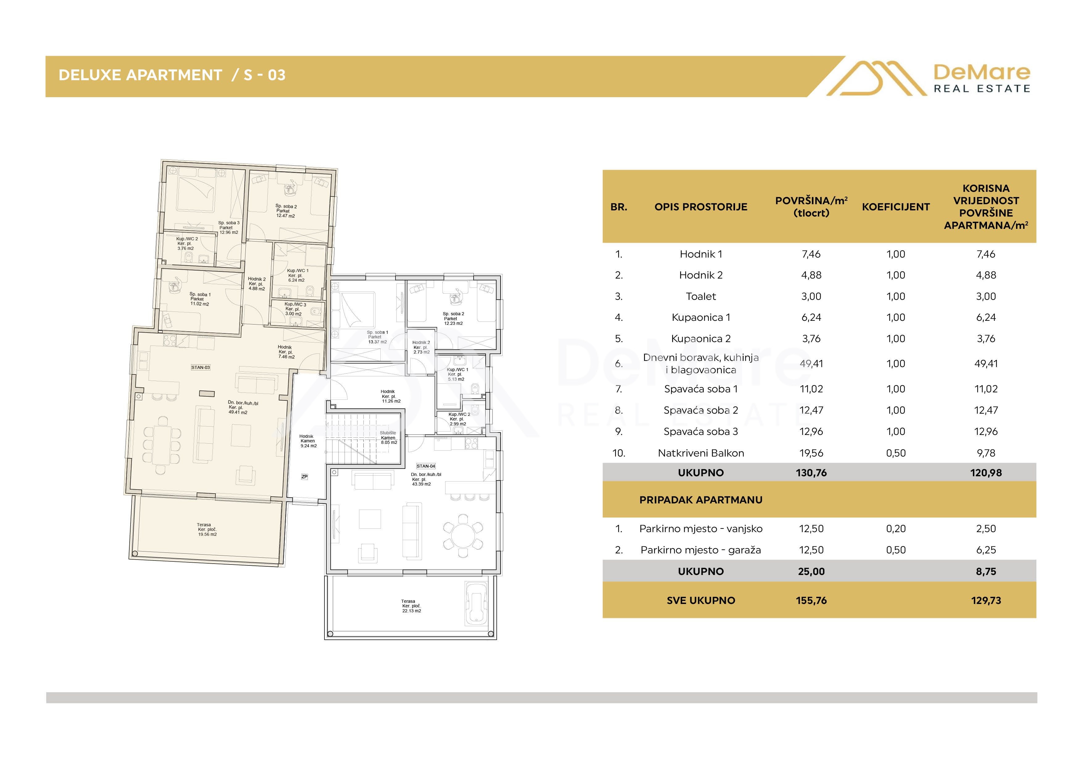 The apartment also has 2 parking spaces - garage / 12.50 m2 and outdoor / 12.50 m2).