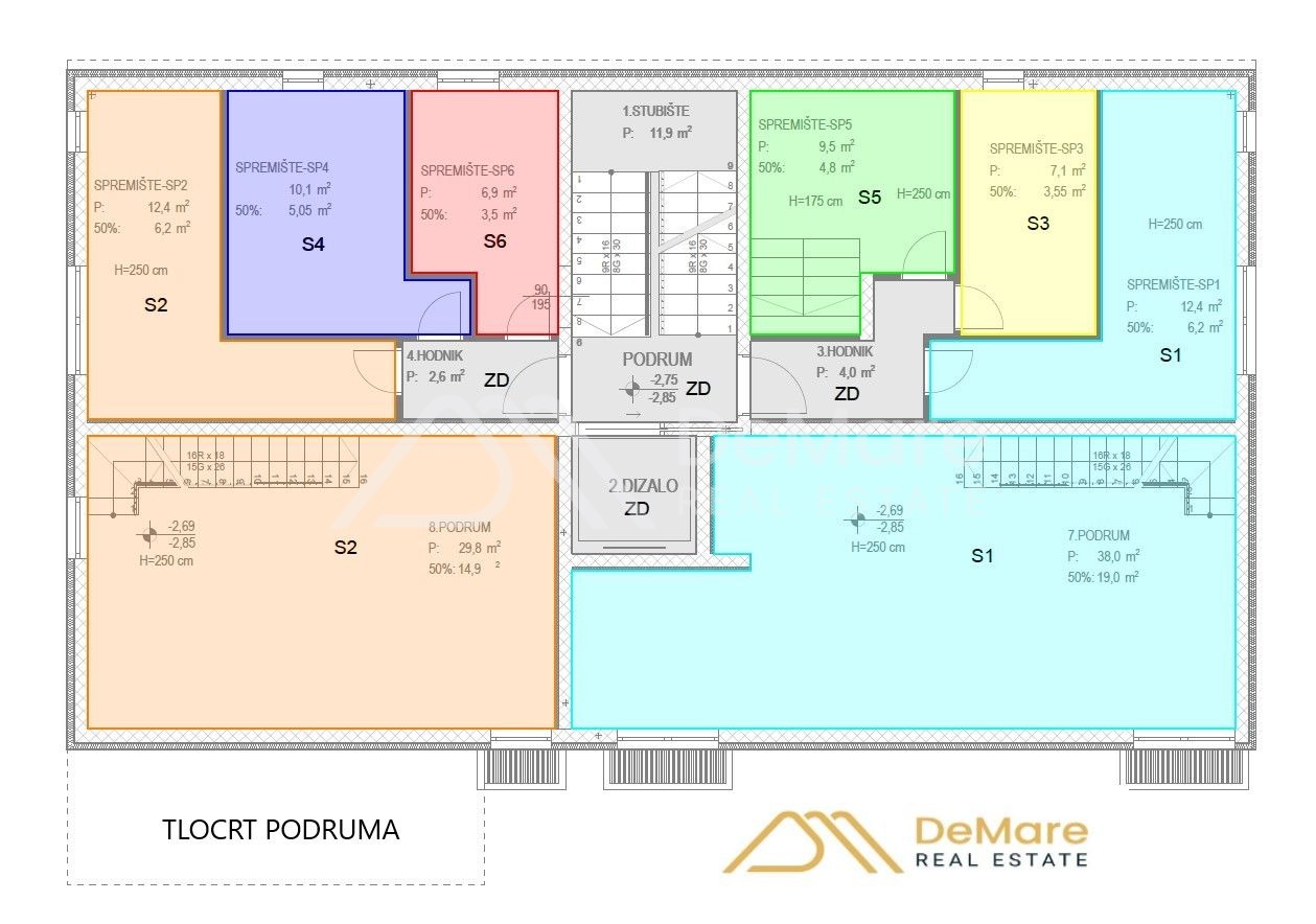 This apartment also includes a spacious basement (38 m2) that can be used as a tavern and a social area, a separate storage room (12.40 m2), and a parking space in the building's yard (16.61 m2).