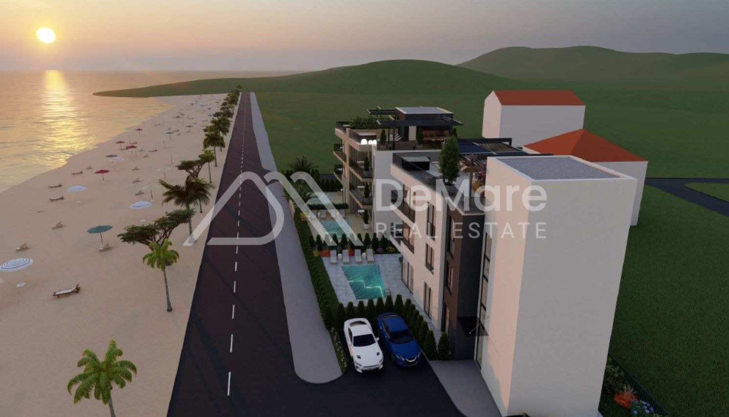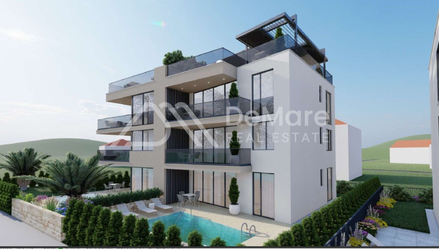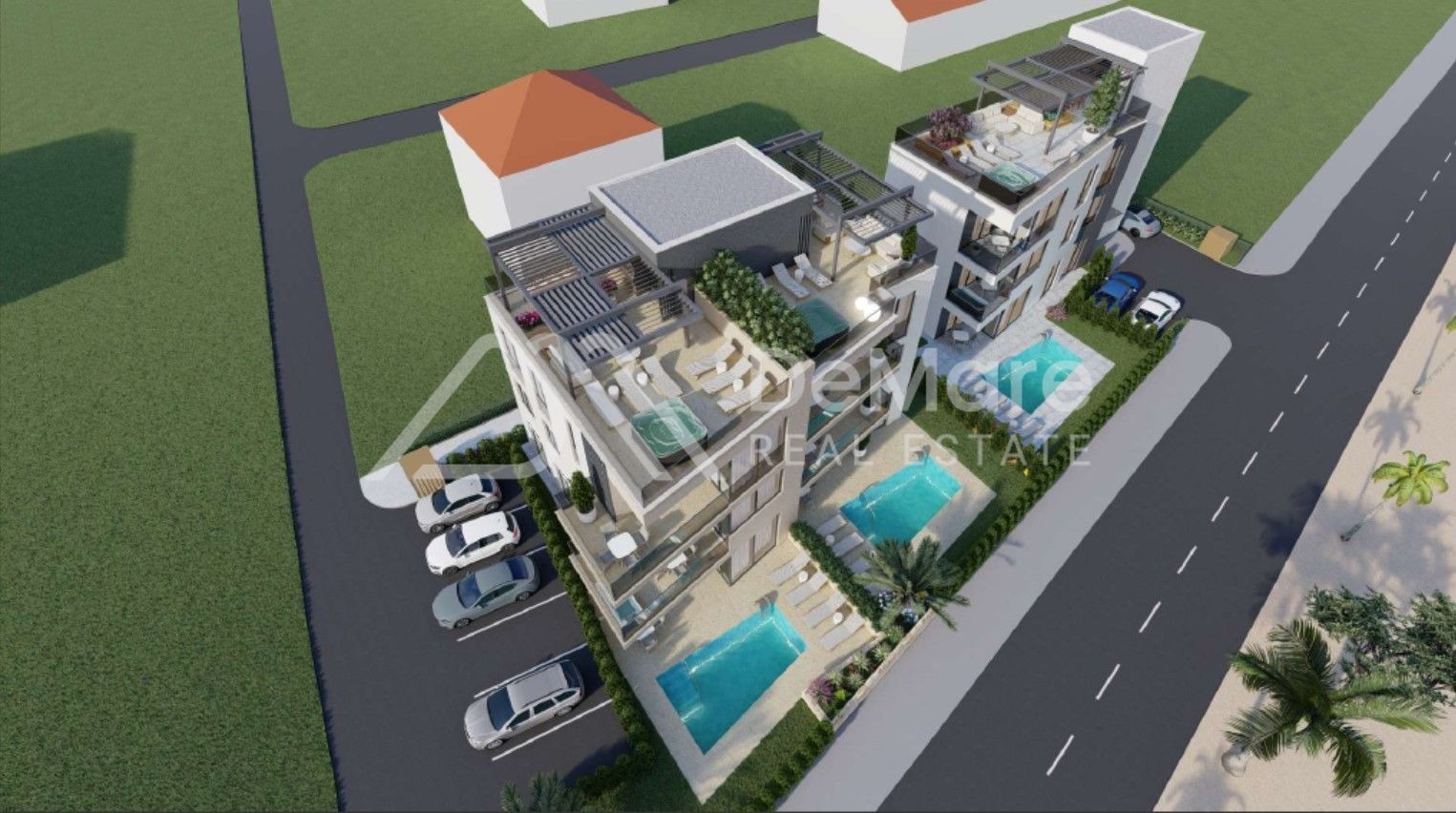 On the roof above the apartment, there is a beautiful, spacious roof terrace of approx. 73 m2 with a panoramic view of the sea, where there will be a swimming pool, sun deck, outdoor lounge with a fireplace and outdoor furniture for outdoor living in an area that will be covered with a pergola.