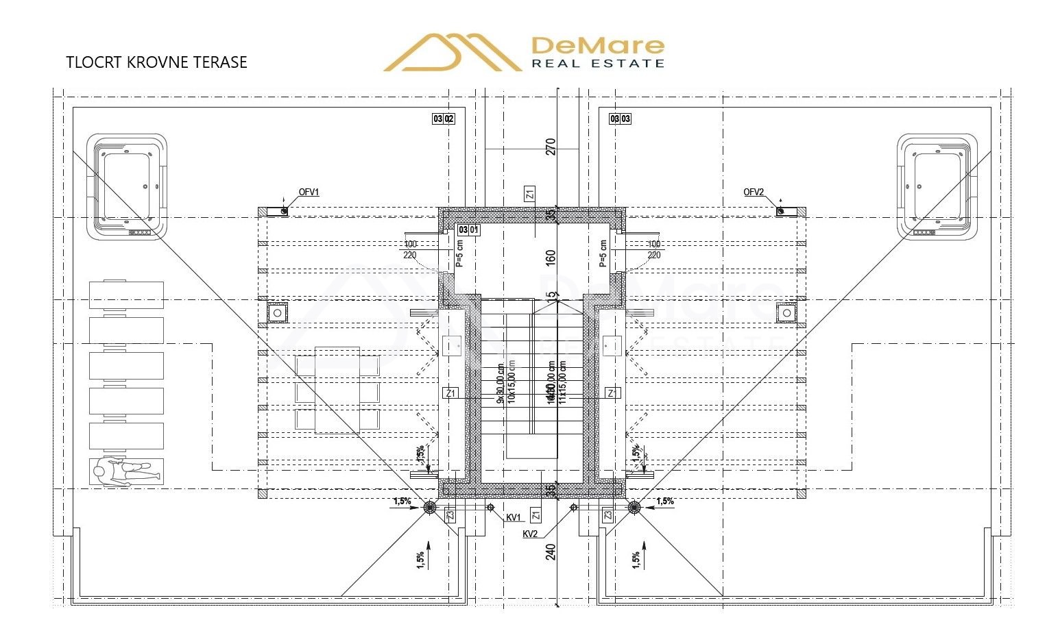 An internal staircase leads to a spacious roof terrace / 94.68 m2, which offers a panoramic view of the sea and islands.