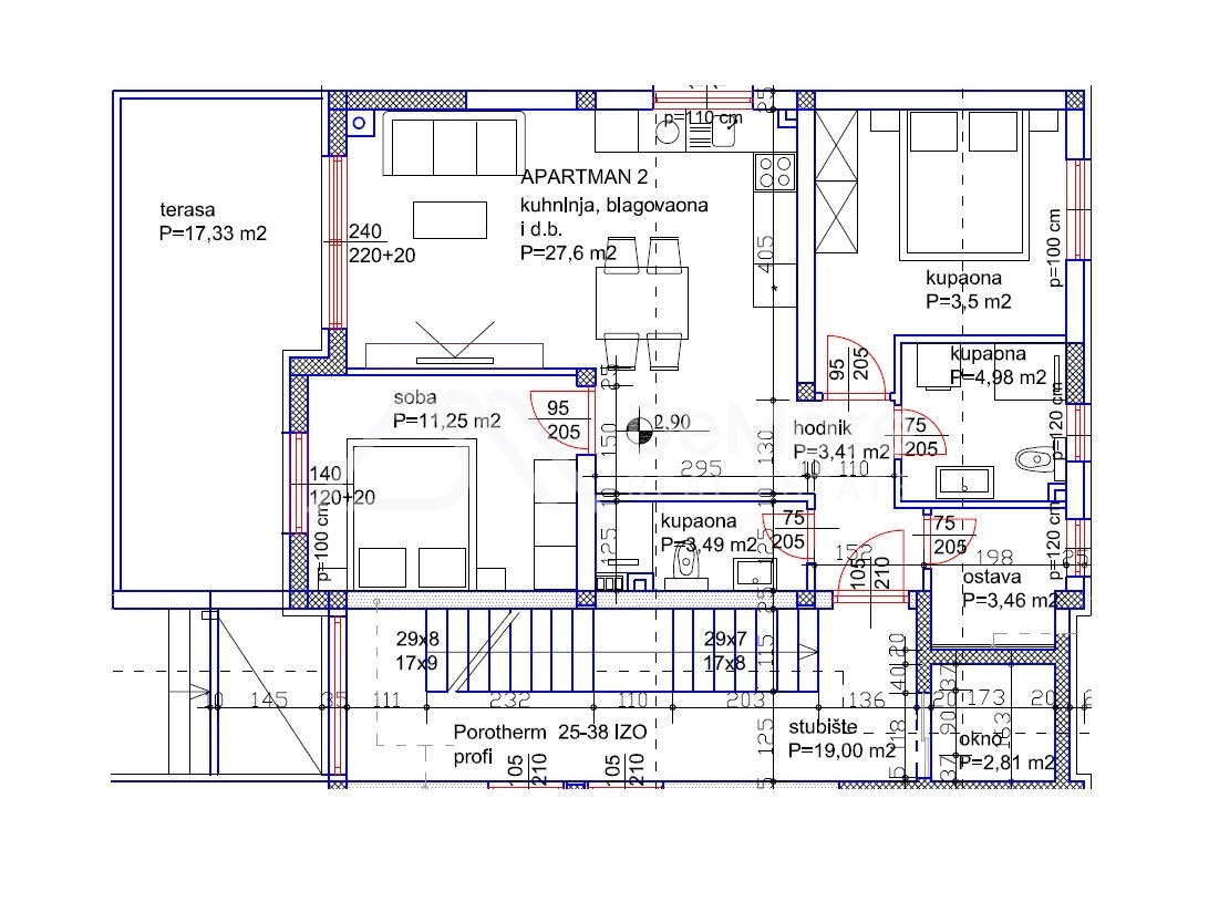 The building is built of high quality and has an installed LIFT, it is built with concrete construction, thermal insulation is 10 cm styrofoam. The floors are covered with high-quality parquet, and the carpentry is made of three-layer PVC with IZO glass. electric blinds and mosquito nets. Floor heating will be implemented in the entire apartment. Air conditioning devices are monitored in the living room and in the bedrooms. The entrance door is fireproof and burglarproof.