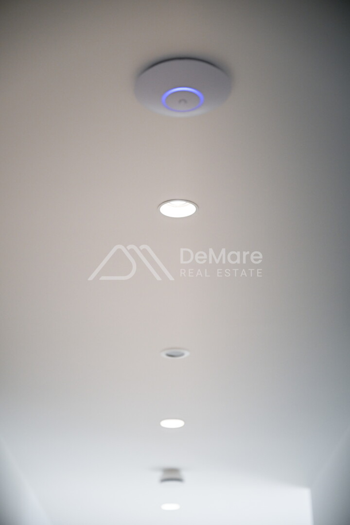 The possibility of remote control via mobile phone or computer of the following functions: underfloor heating, blinds, lighting in the apartment and on the terraces, entrance doors, air conditioning, pool heating, alarm, audio devices (radio station, Spotify, You Tube…).