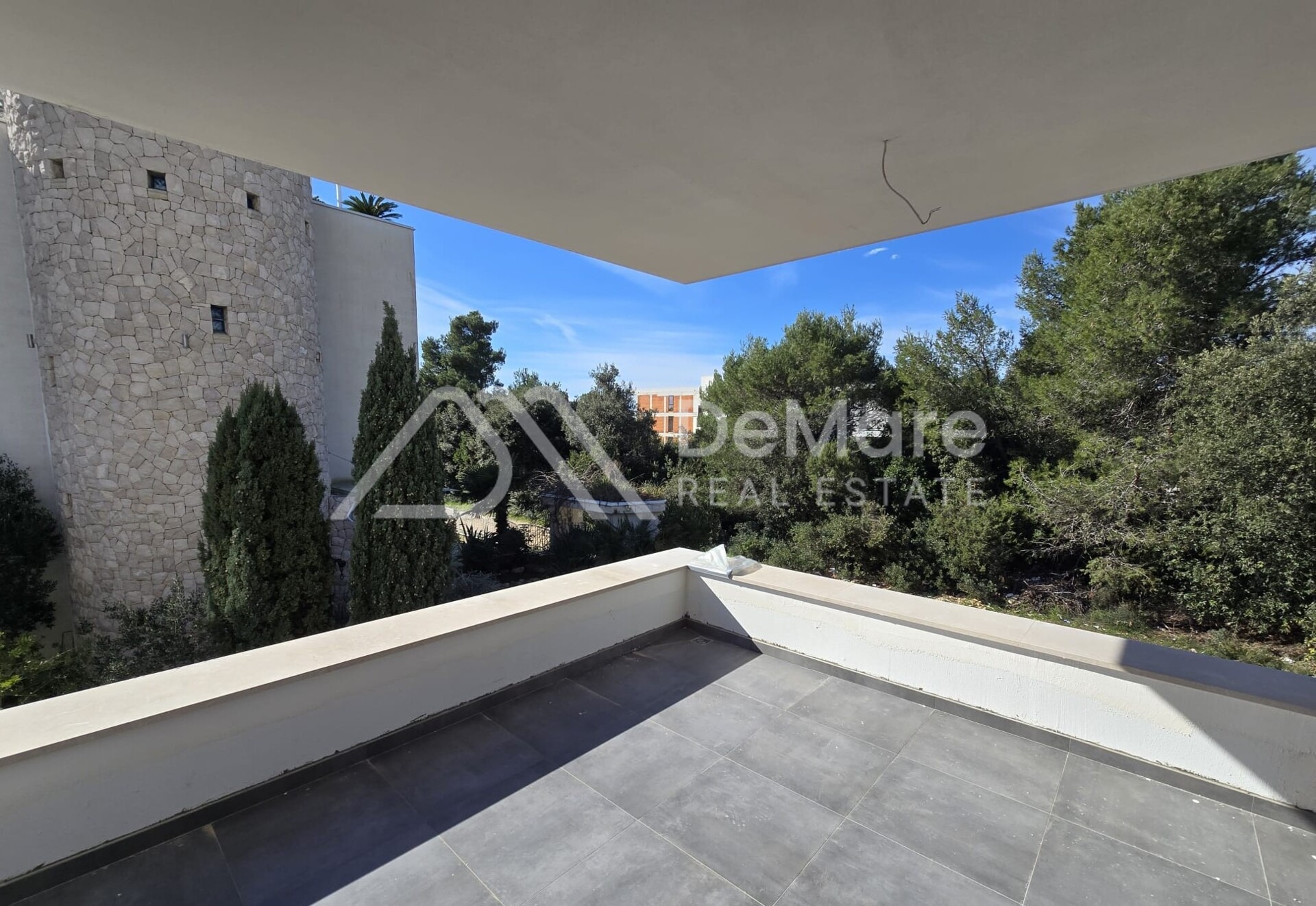 A beautiful apartment in an attractive location, near the sea and the beach; occupies the entire first floor of the building. A comfortable living room on one side and a kitchen with a dining room on the other side of the apartment are only separated from the spacious covered outdoor terrace by a sliding glass wall.