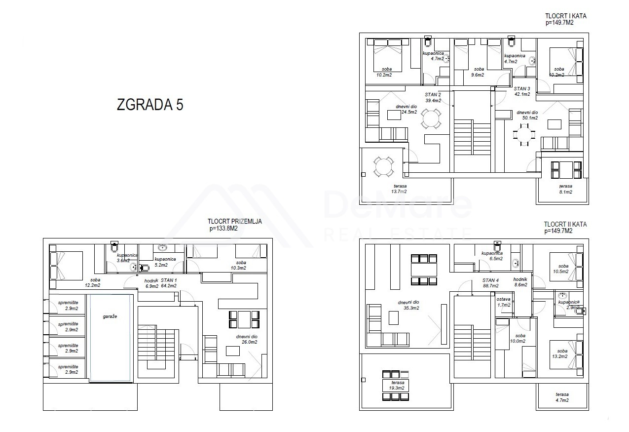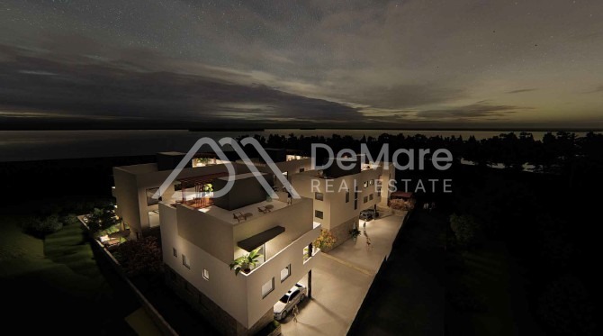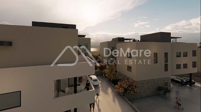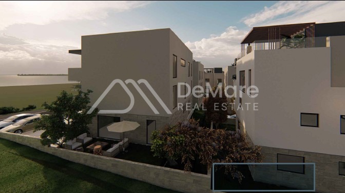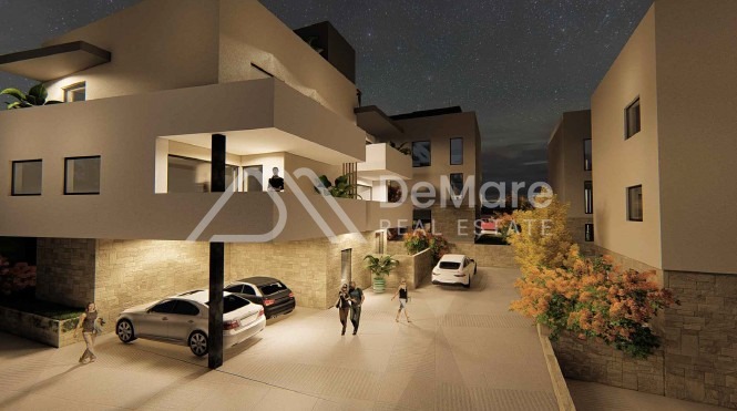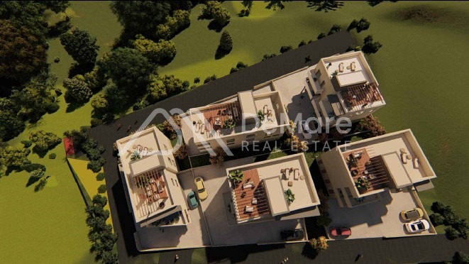 This is a construction of a new, modern settlement in a sought-after location in Petrčane - 5 residential buildings, designed on 3 floors (GR + 2) with a roof terrace, and each has a total of 4 residential units. In the building's courtyard there is a garden and a courtyard where there is an outdoor parking lot, and two parking spaces are assigned to each apartment.