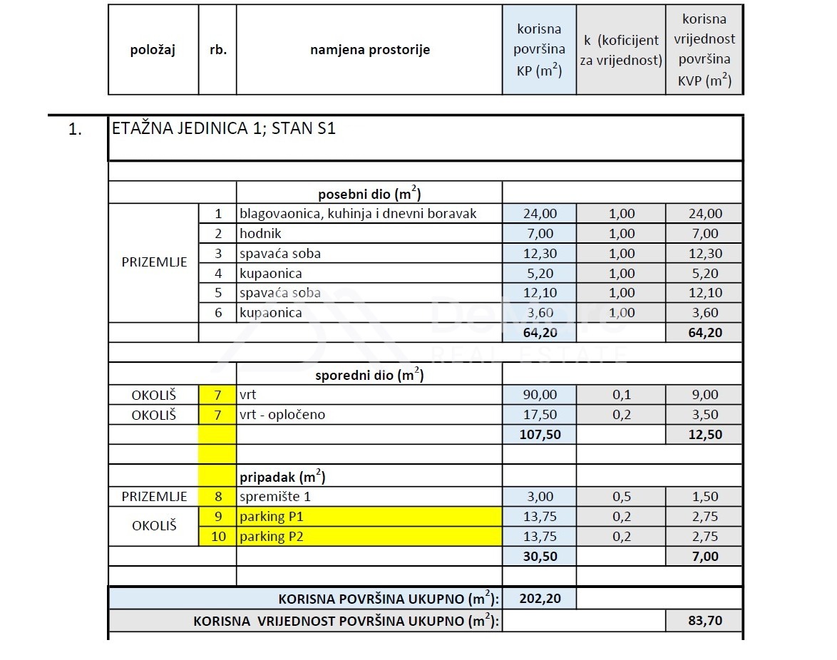 The total gross area of the apartment is 202.20 m2, and the calculated value of the usable area of the apartment with its accessories is 83.70 m2.