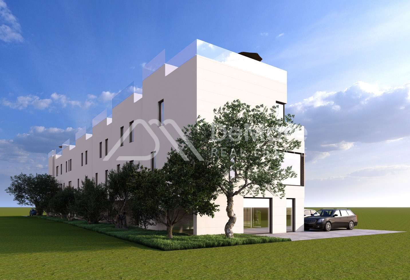 This is a project of 6 residential units designed as terraced houses, each consisting of 3 floors (ground floor, first and second floor) + roof terrace.