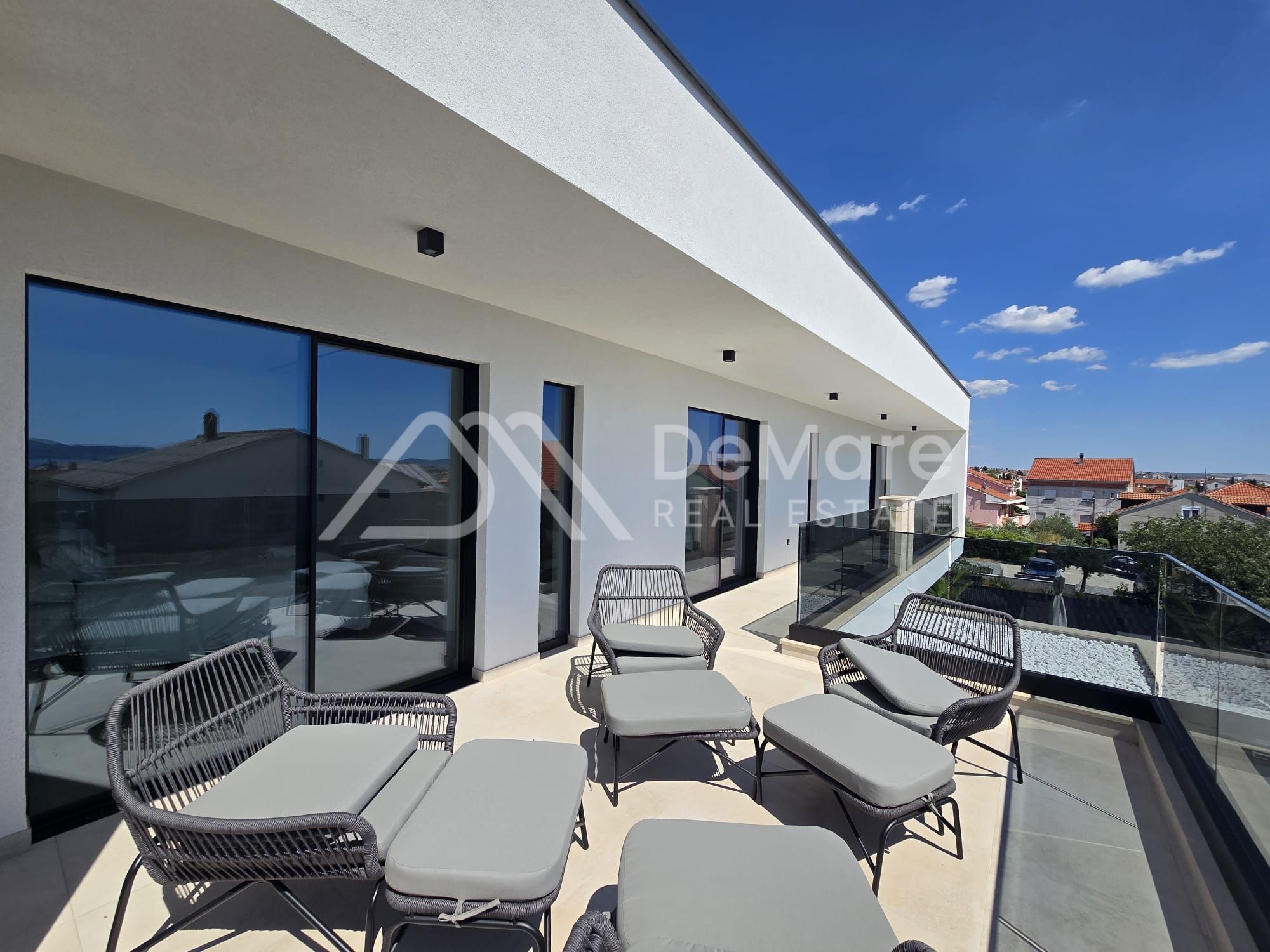 For sale is a new, beautiful, urban luxury villa with sauna, gym and heated pool in modern style, located in a quiet location in the city of Zadar, in the Petrić area.