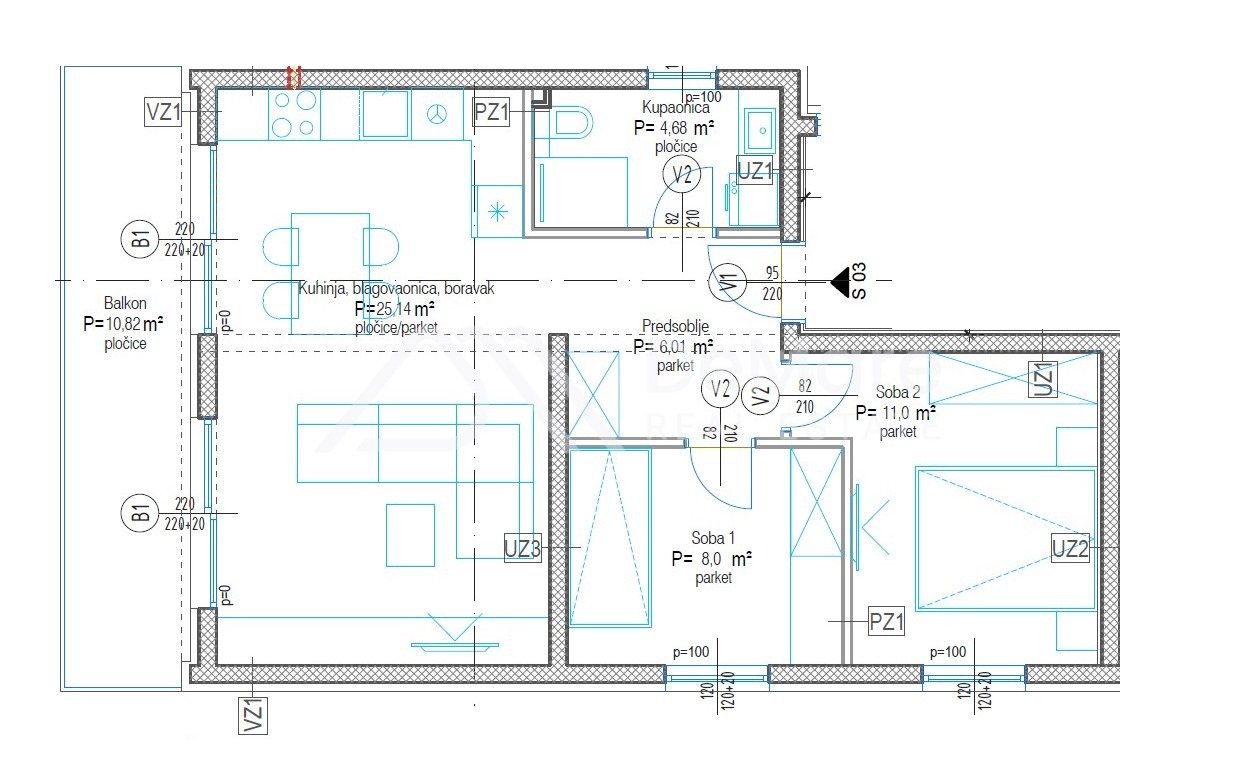 ≅ Dnevnog boravka s kuhinjom i blagovaonicom (25,14 m2)