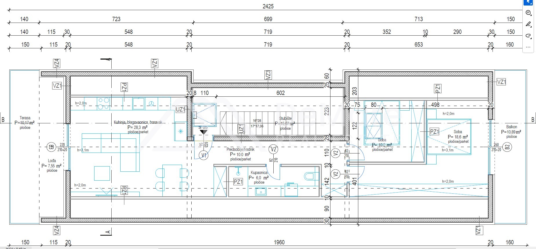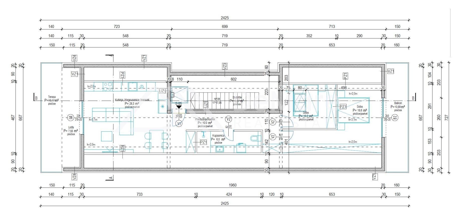 ∝ POTKROVLJE S5- Stan s 2 spavaće sobe, terasom, lođom i balkonom