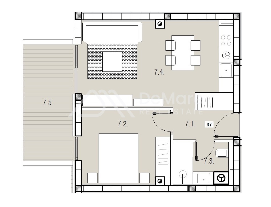 2. KAT / S7: Stan s jednom spavaćom sobom i lođom