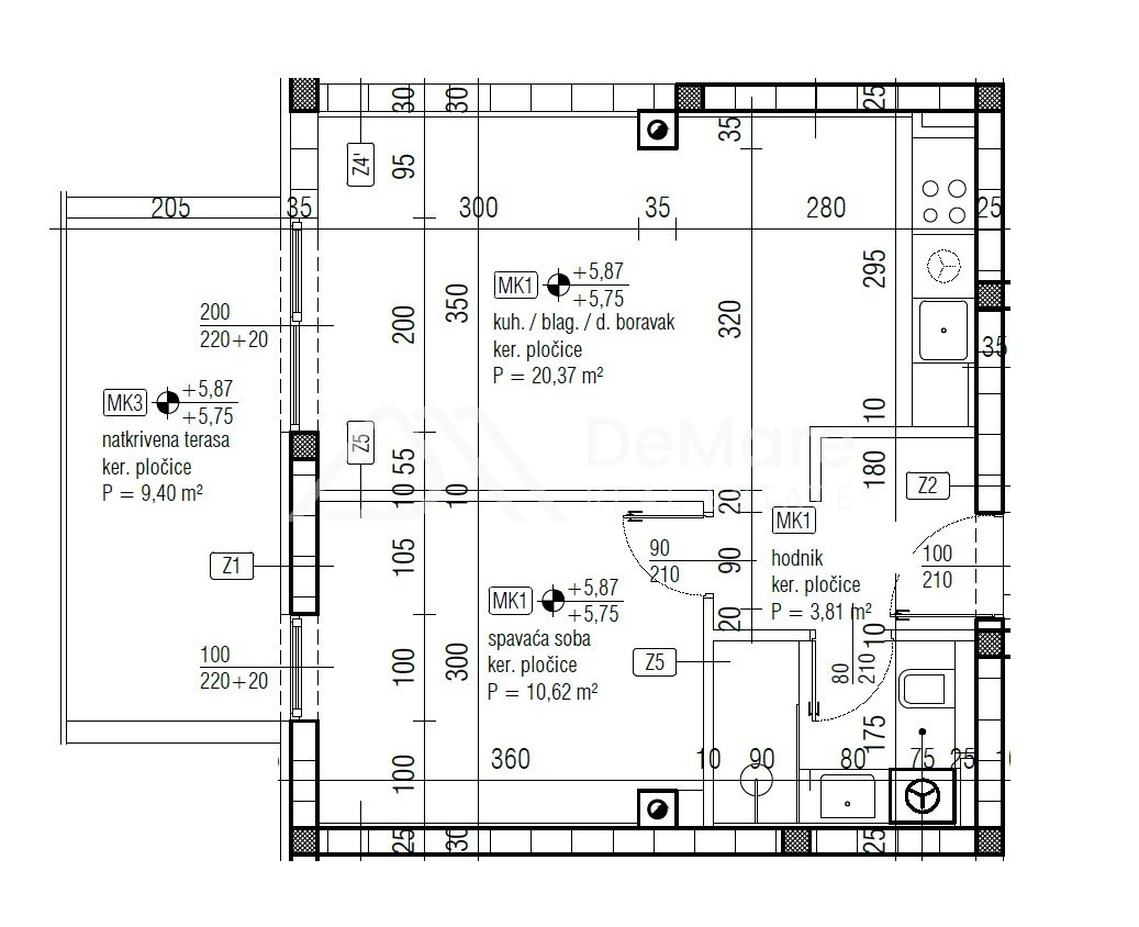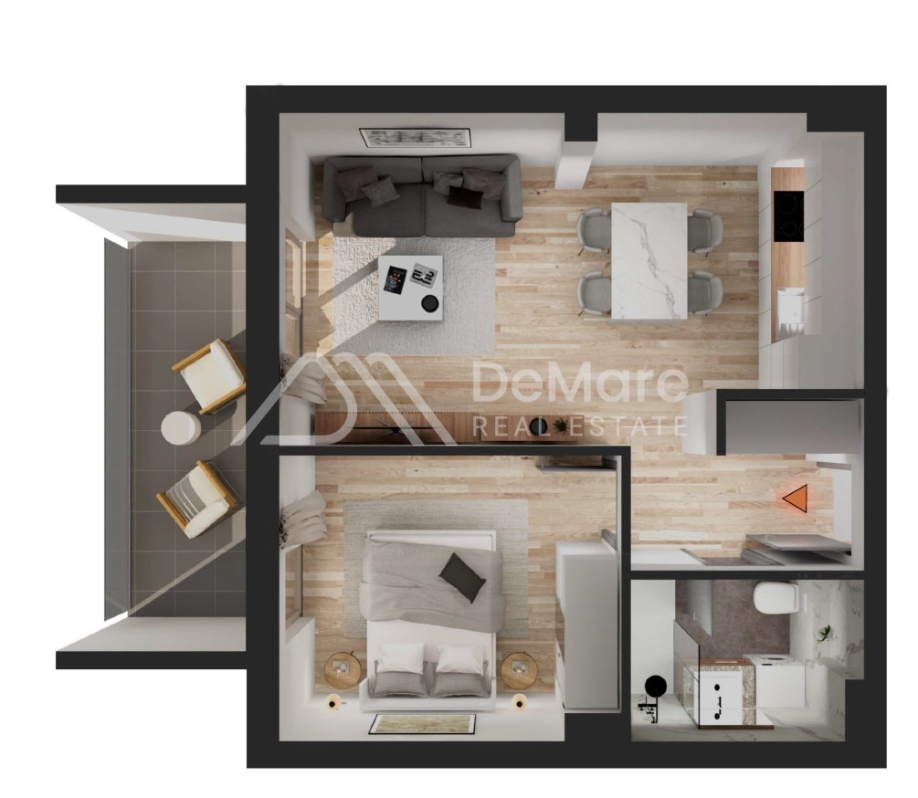 - Dnevnog boravka s kuhinjom i blagovaonicom / open space (20,37 m2) s izlazom na
