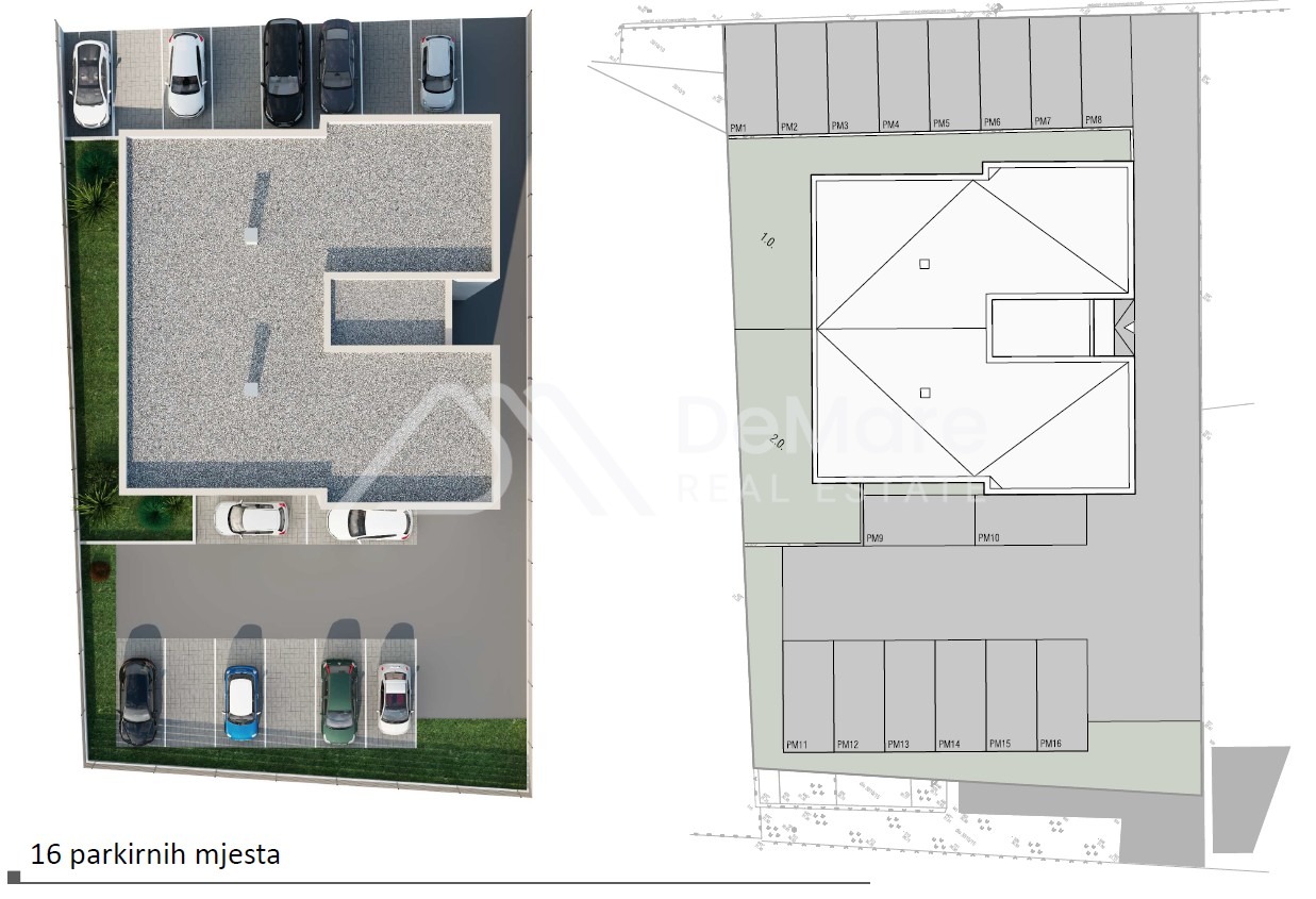 Svakoj stambenoj jedinici pripada jedno spremište i dva parkirna mjesta.