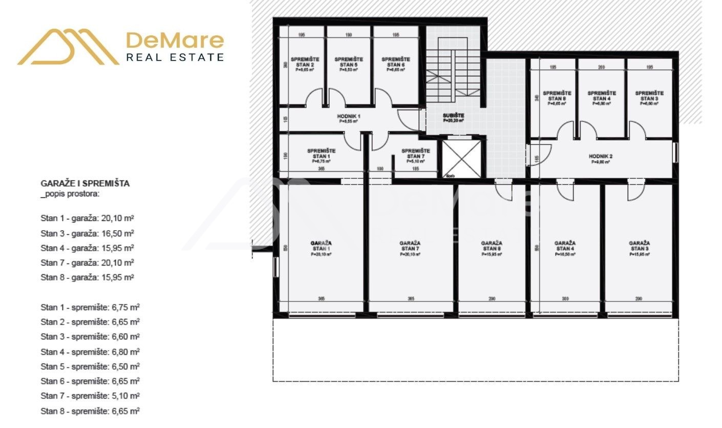 Svakom stanu pripada jedno spremište, kao i dva parkirna mjesta, a na okućnici postoji mogućnost elektronapajanja za elektro-vozila.