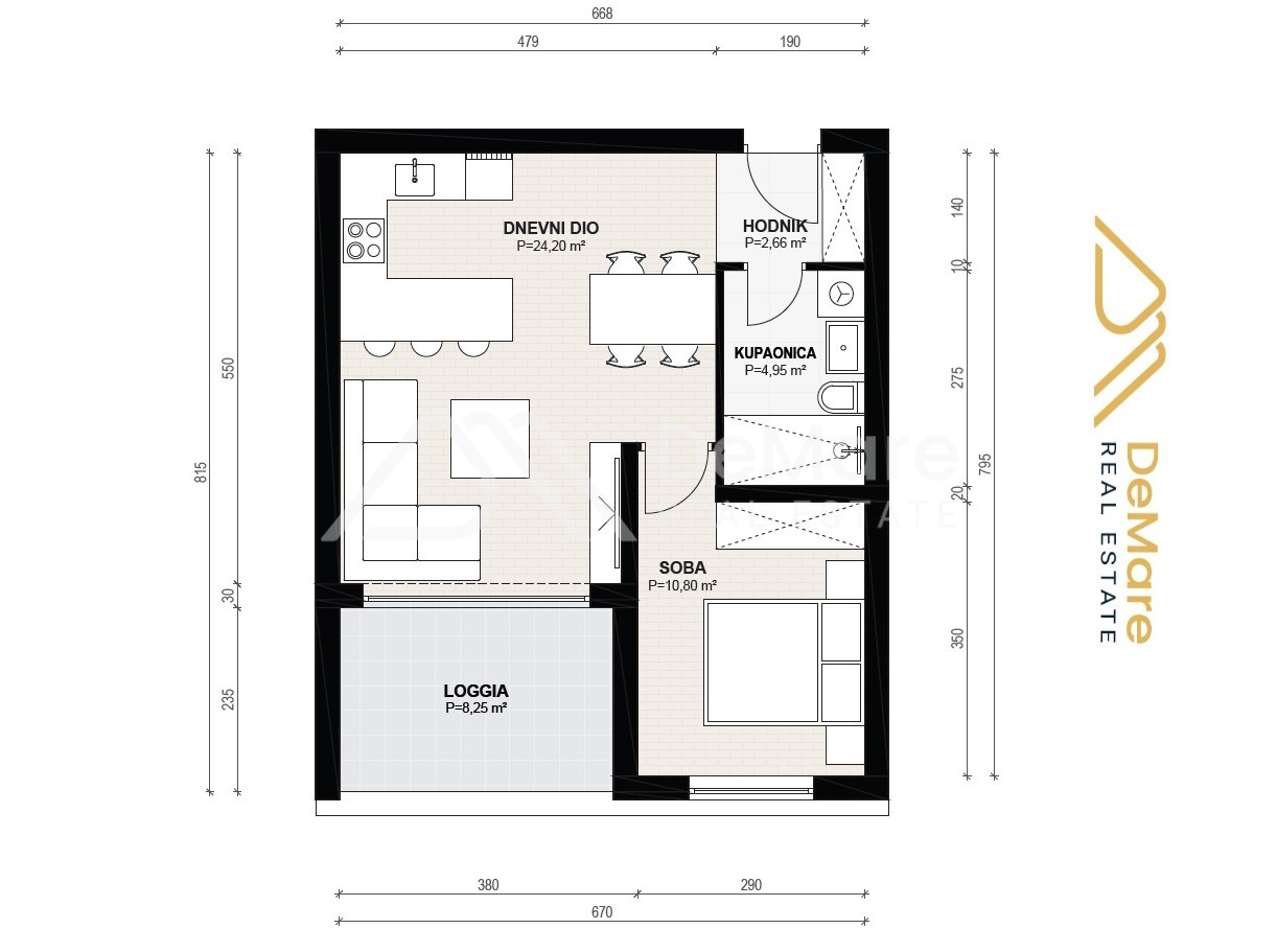 -- dnevnog boravka s kuhinjom i blagavaonicom (open space) / 24,20 m2,