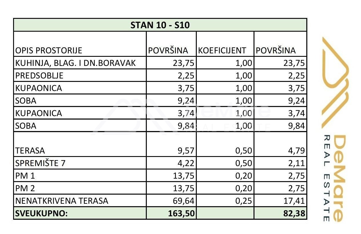 Ukupna korisna obračunska vrijednost površine stana iznosi 82,38 m2.