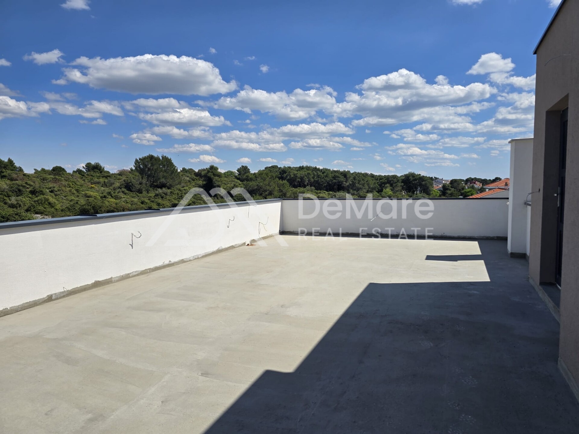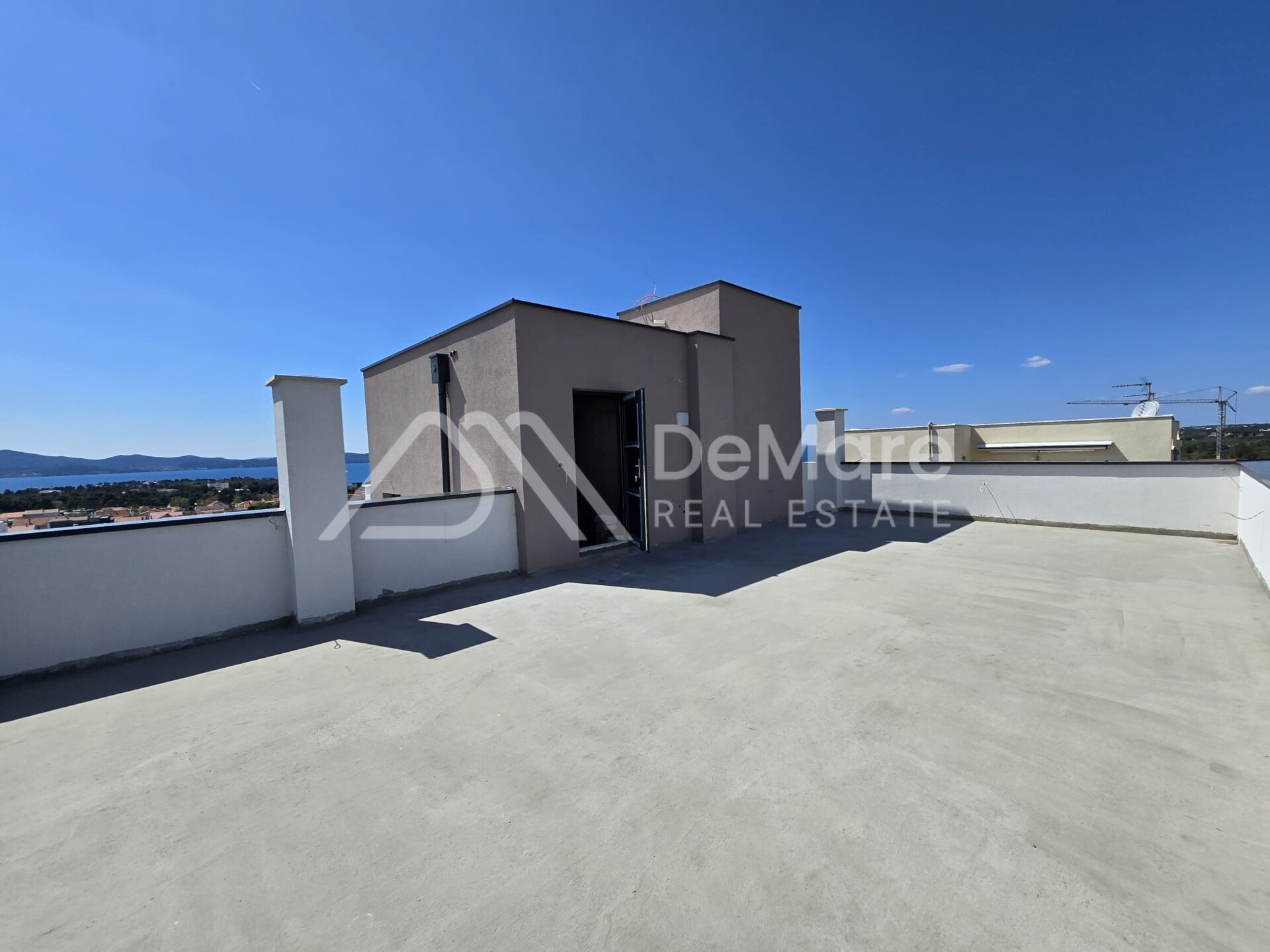 Na krovu iznad stana, nalazi se prekrasna krovna terasa površine cca. 69,64 m2, s koje se pruža panoramski pogled na more i otoke, a na koju se može postaviti pergola i masažni bazen, sunčalište, outdoor lounge sa kaminom i vanjski namještaj za boravak na otvorenom na prostoru.