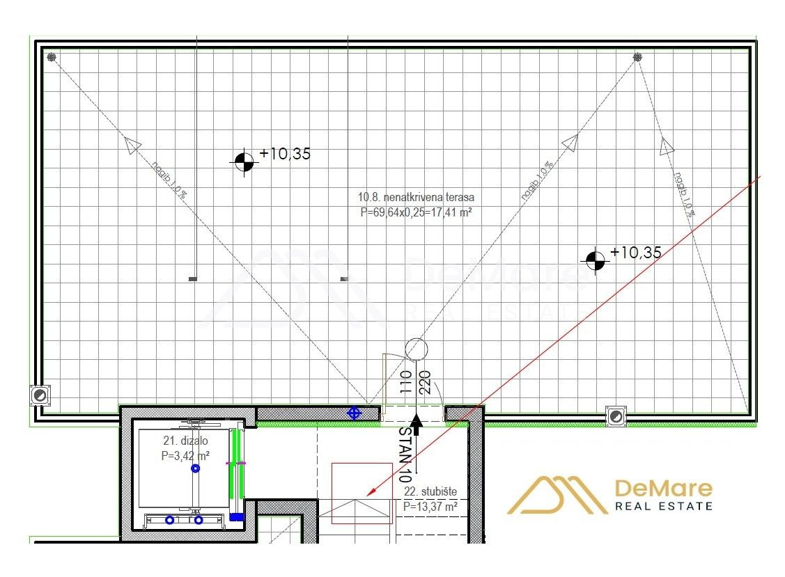 Radi se o projektu višestambene zgrade (podrum, prizemlje, prvi i drugi kat, te krovnih terasa), koja se sastoji od 10 stambenih jedinica. Svakom stanu pripadaju 2 parkirna mjesta na okućnici zgrade, kao i jedno spremište u podzemnoj etaži. Stanovi u prizemlju imaju pripadajući dio vrta, a stanovi na drugom katu imaju krovne terase s pogledom na more.