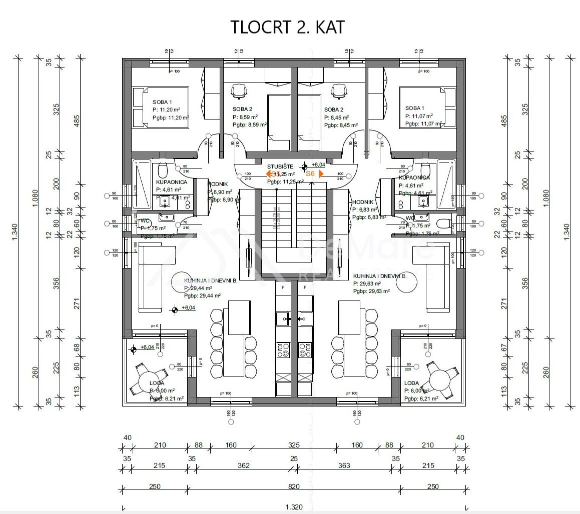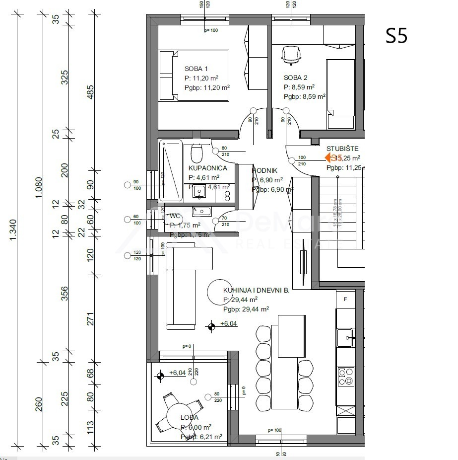 - Dnevnog boravka, kuhinje i blagovaonice - 29,44 m2
