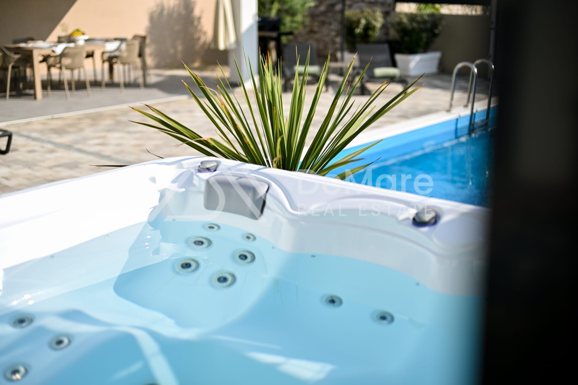 Na terasi pored bazena instalirani su i svi infrastrukturni priključci gdje je postavljena jacuzzi hidromasažna kada.