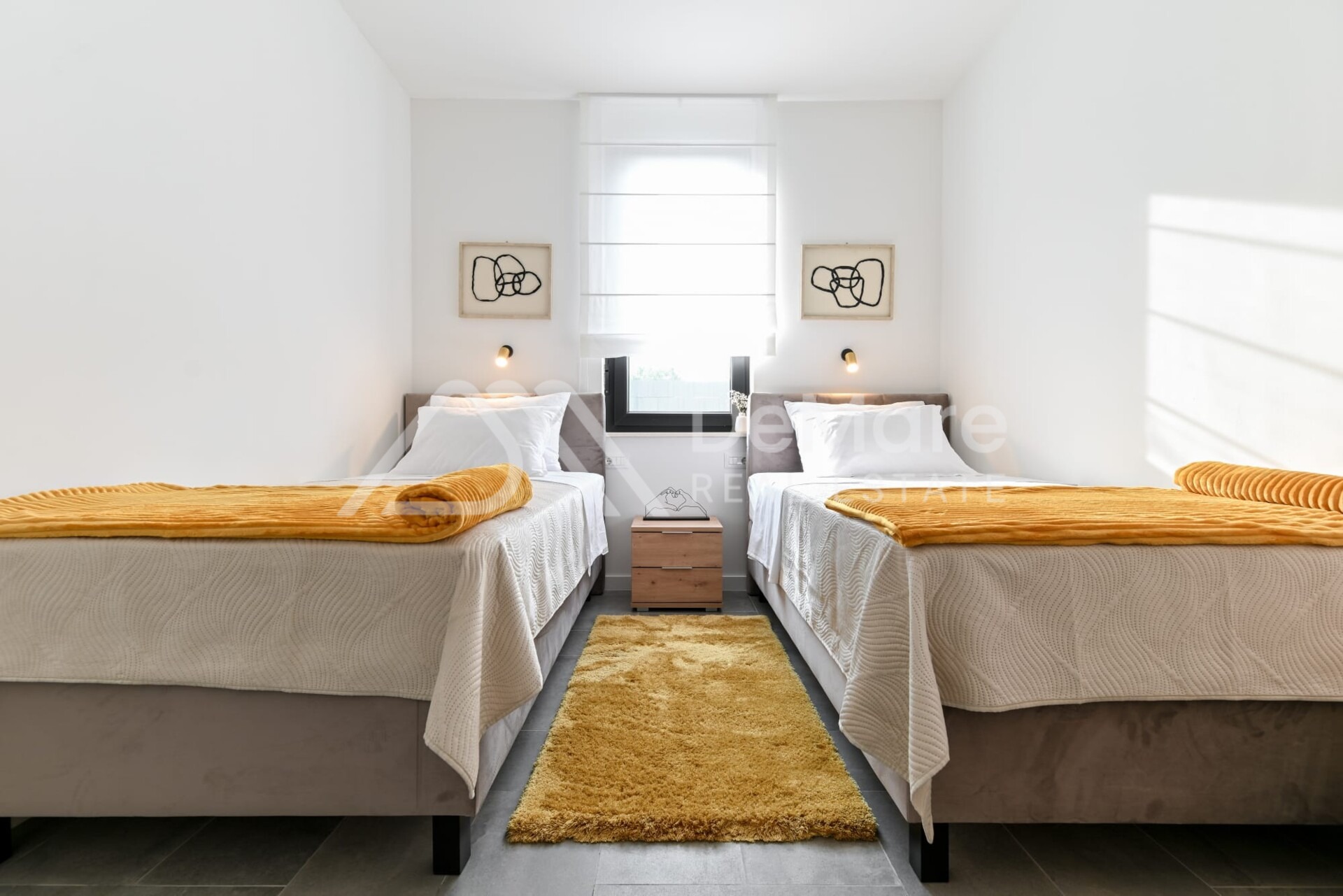 Velika prednost ove predivne ville je što se nalazi na izuzetno mirnoj lokaciji, okružena obiteljskim kućama i udaljena je od gradske gužve, a opet je samo 3,5 km udaljena od mora i plaže i 20-ak minuta vožnje do Zadra i svih gradskih urbanih sadržaja.